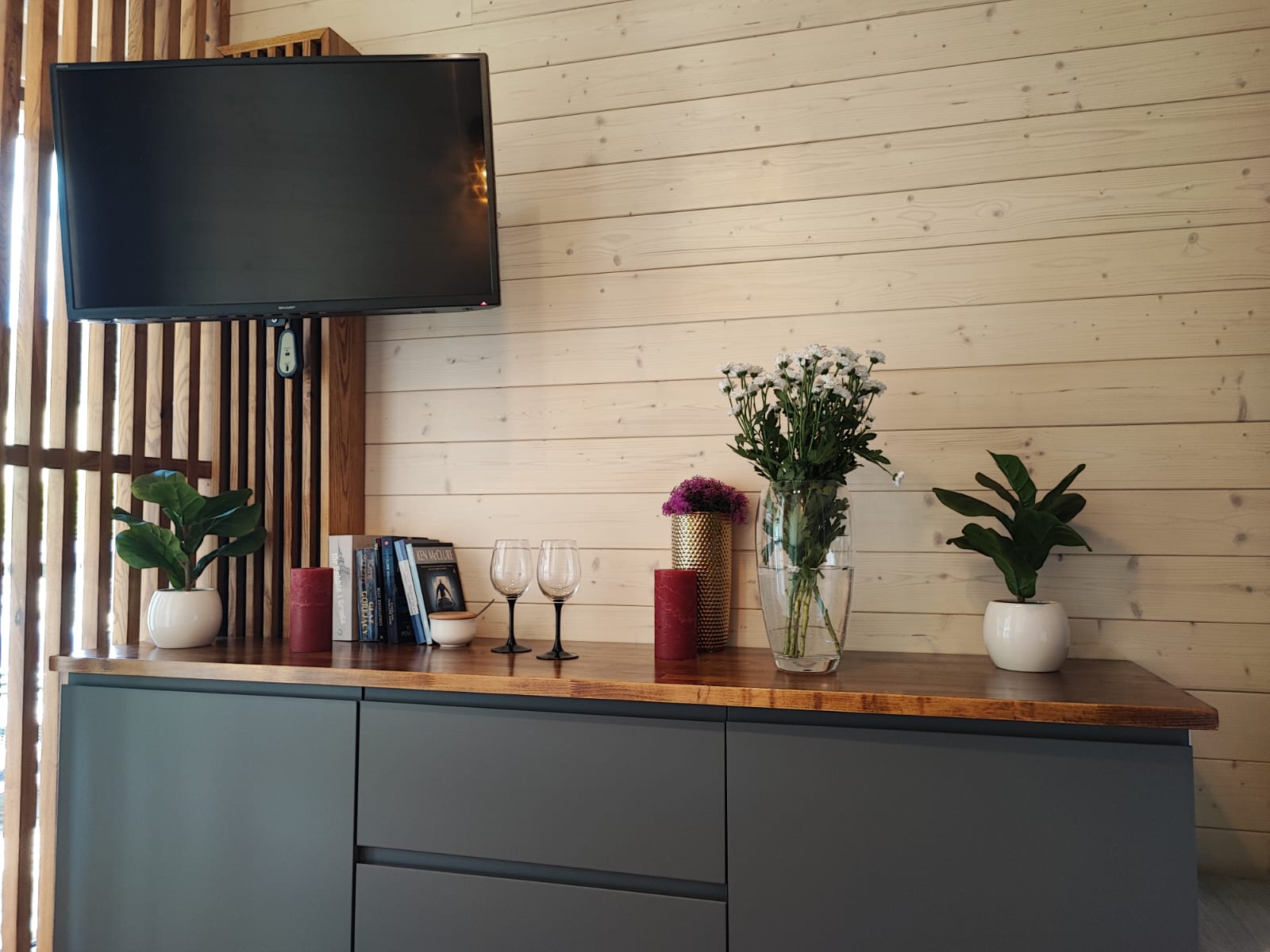 • Fassadenmaterial: Sibirische Kiefer (thermisch und ökologisch modifiziertes Holz