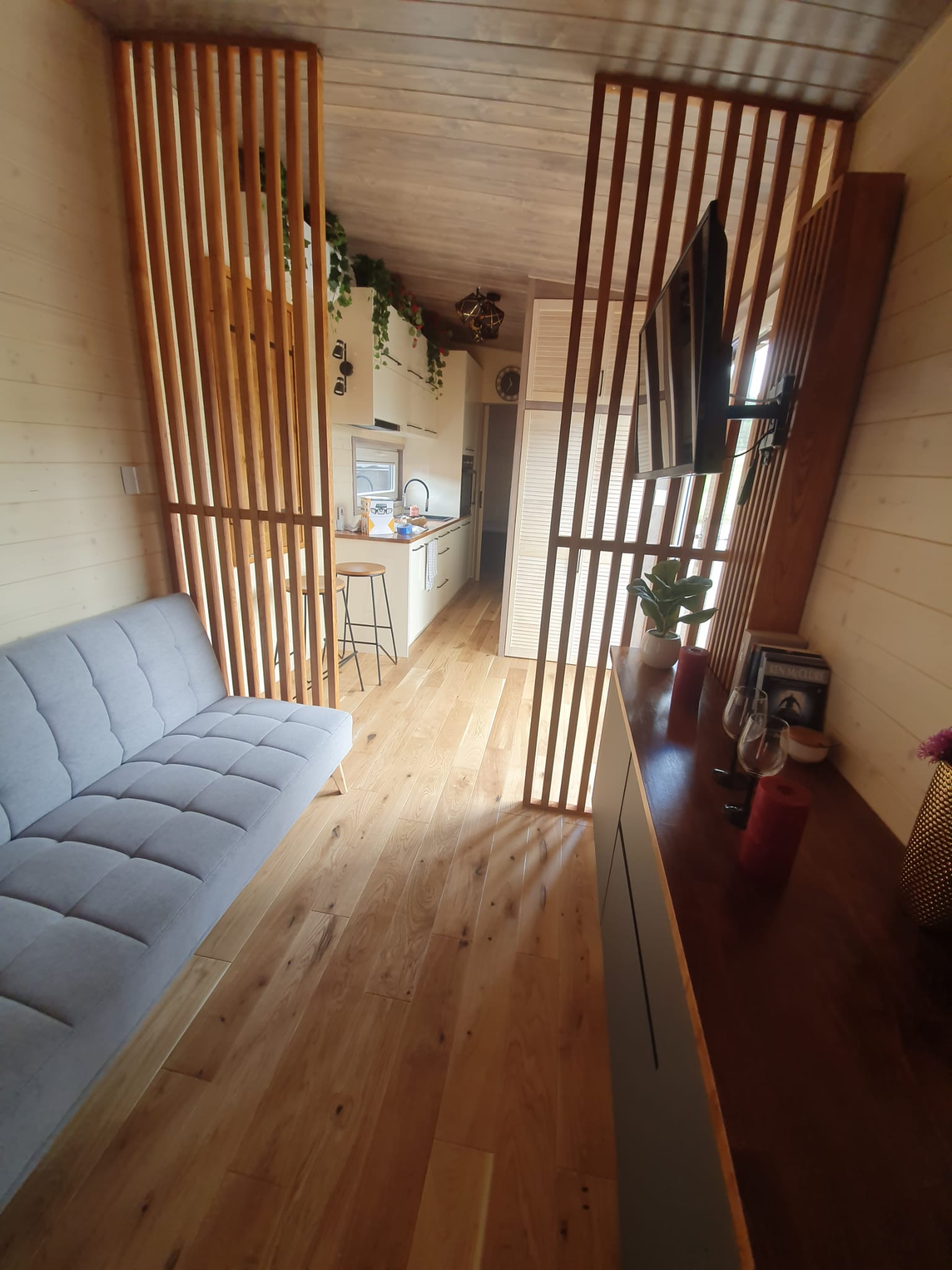 Mobile Architekturen können Sie überraschen, bei der Gestaltung des Tiny House Susanne haben wir den Raum im Inneren maximal genutzt. Wir haben die Feste Form dank schöner Projekte und einer Vielzahl von Lösungen erhalten.