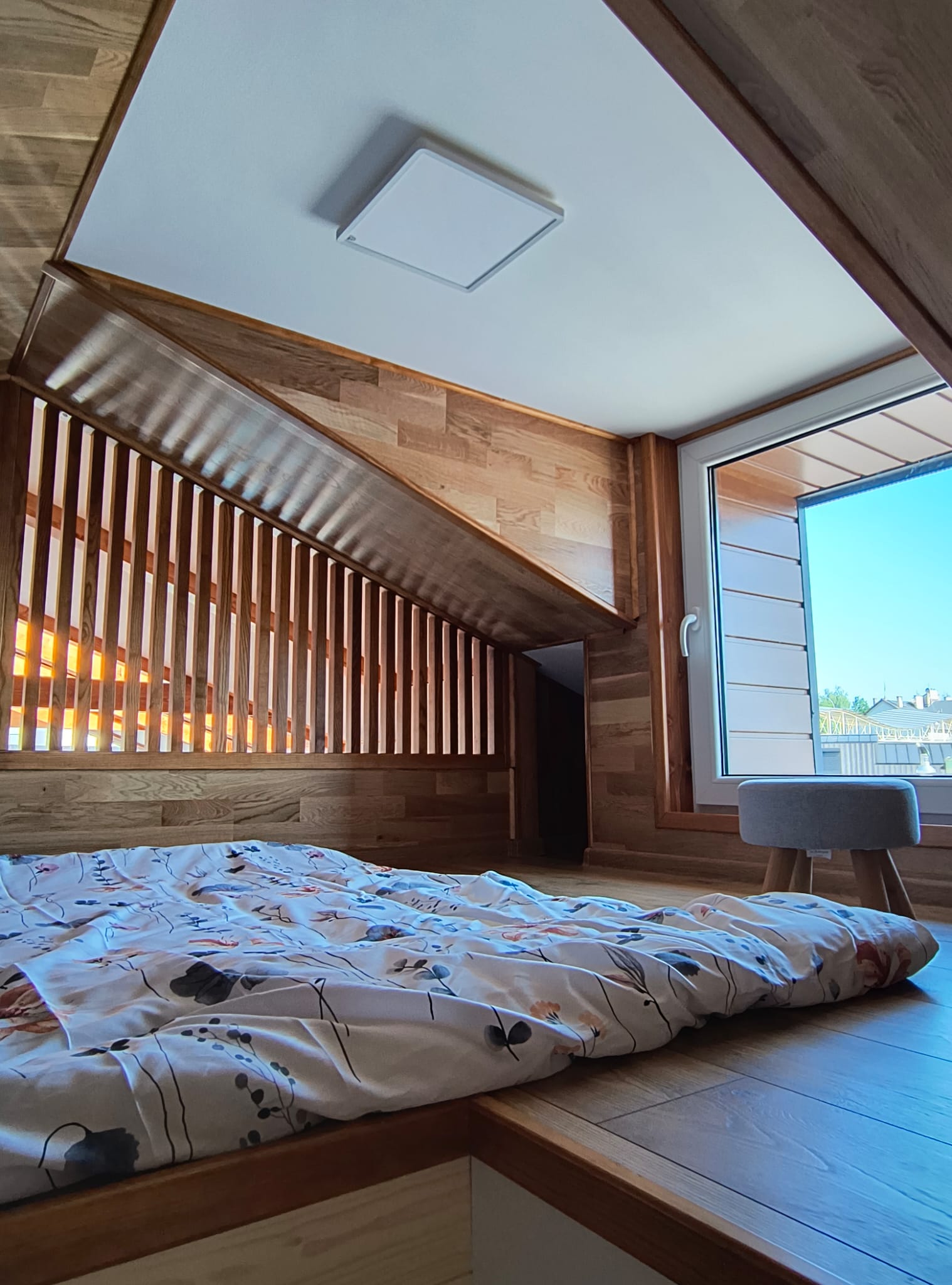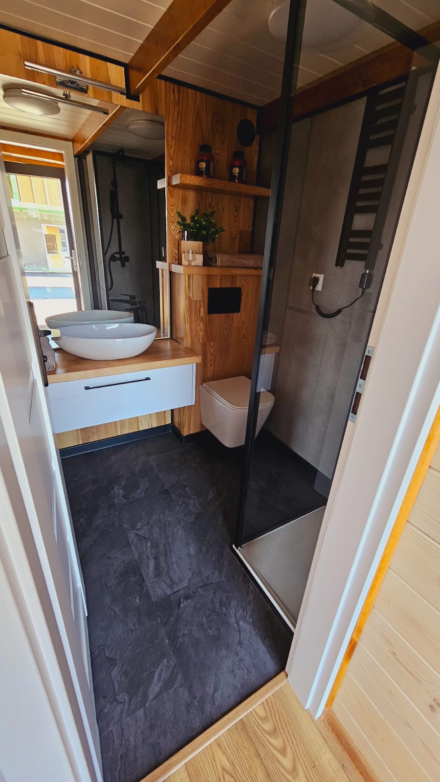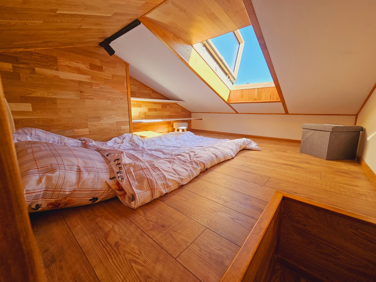 - Zwei Schlafgalerien mit Regalen, Beleuchtung und Fenstern