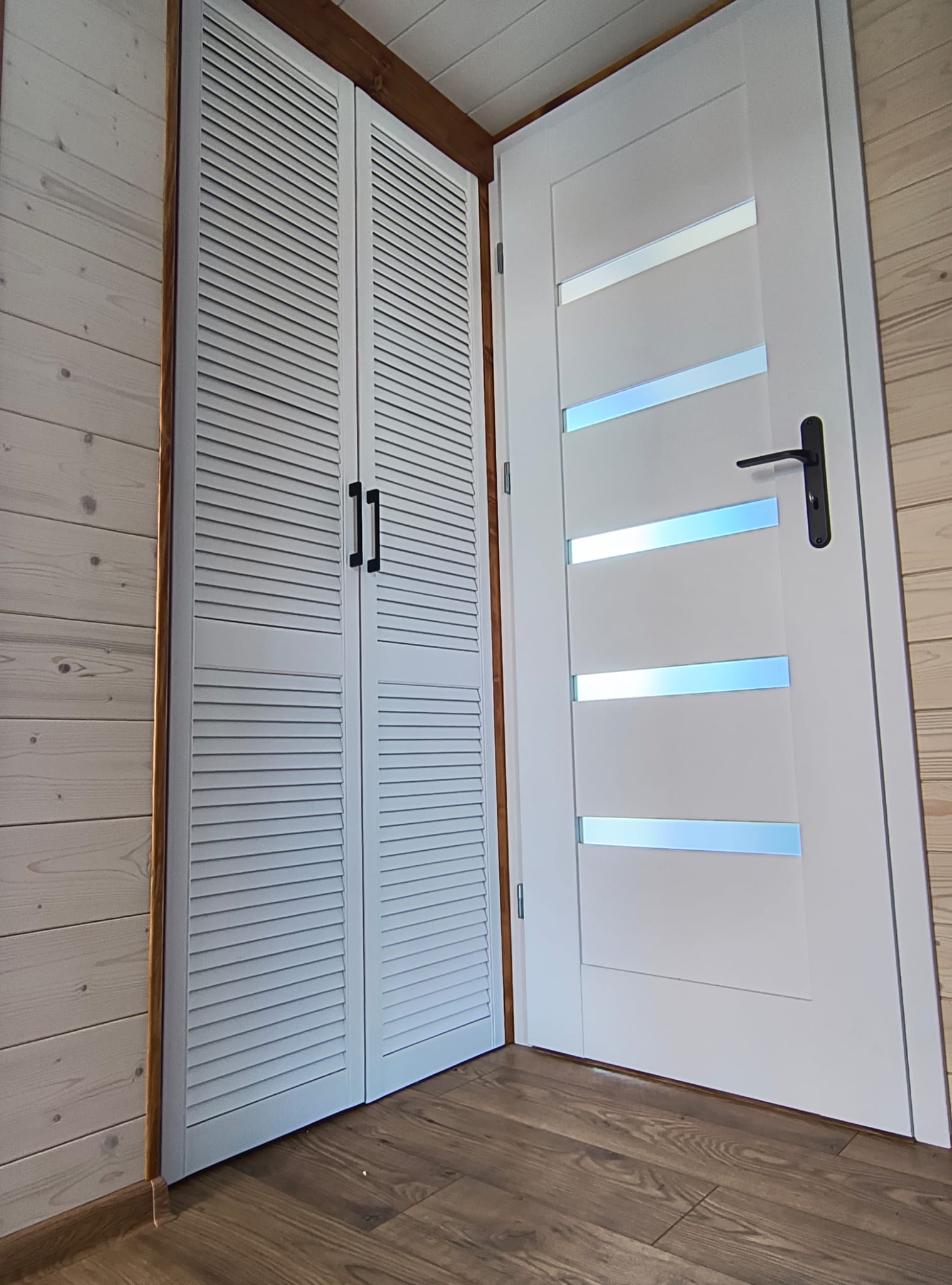 - Design in Weiß mit FIBO-Platten und Holzelementen
